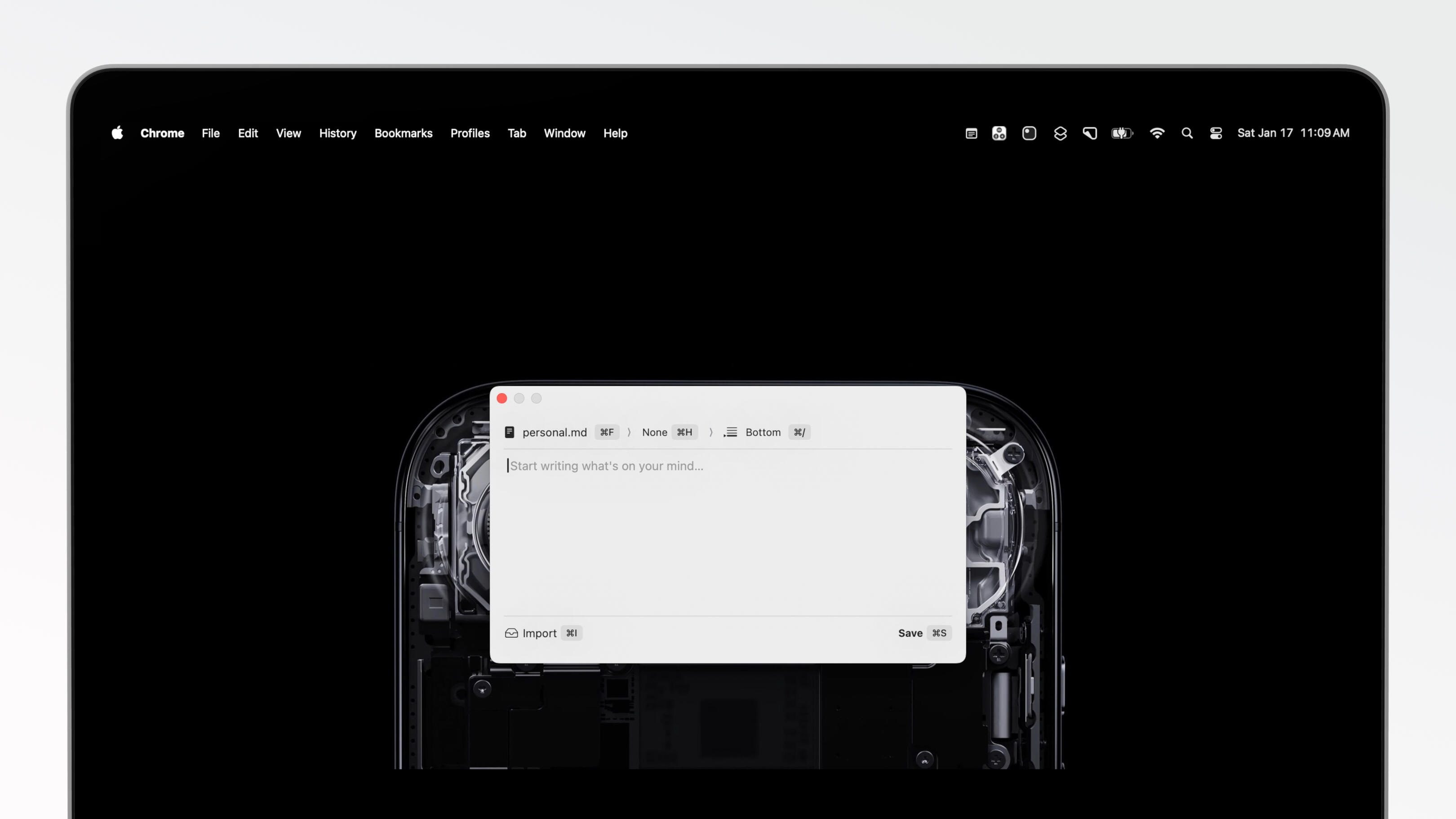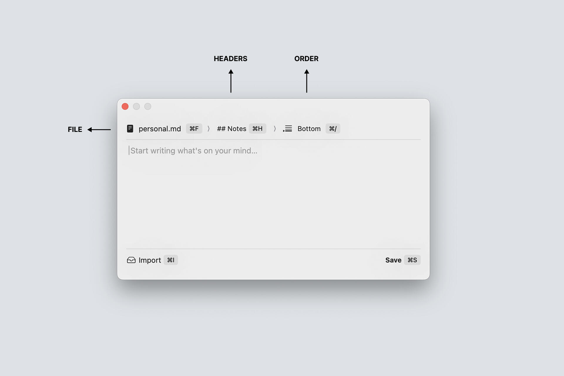 It's an app designed for taking notes throughout your day in markdown files, allowing you to capture notes instantly from anywhere on macOS.You don't even have to open the file to jot down your notes.